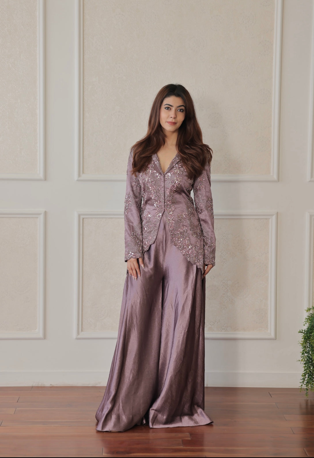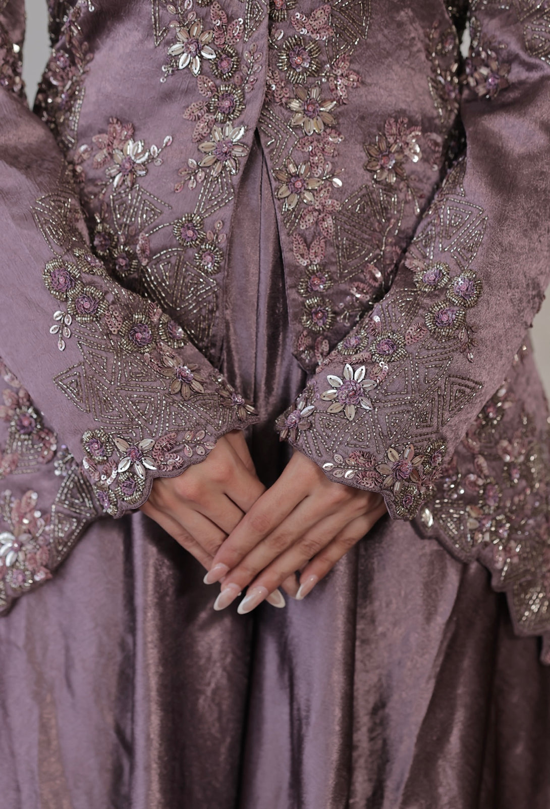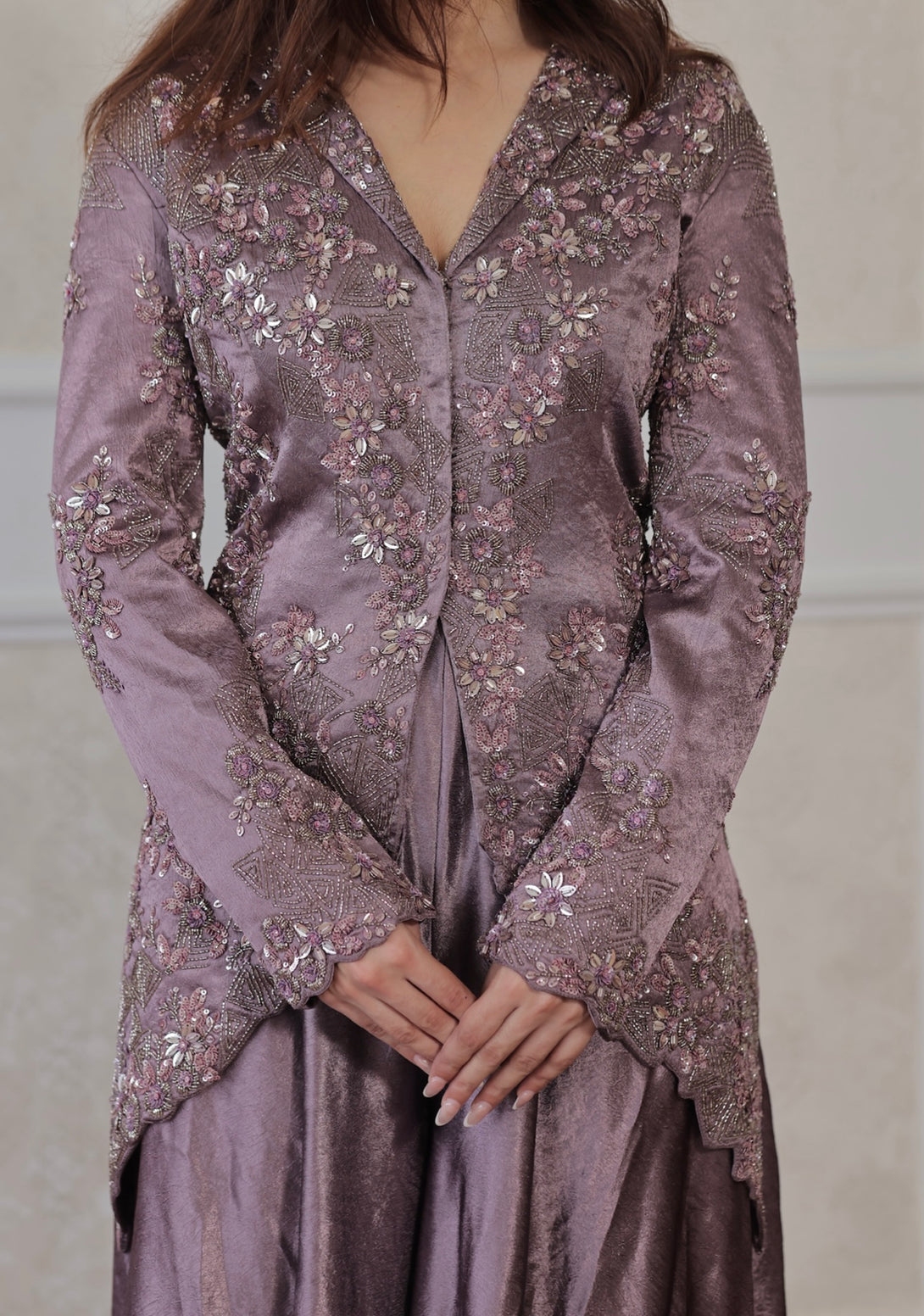 Colour: Mauve Embroidery Details: Hand Embroidered Delivery Time: 35 days Wash Care: Dry Wash Only Availability: Made To Order Customization Available: YES