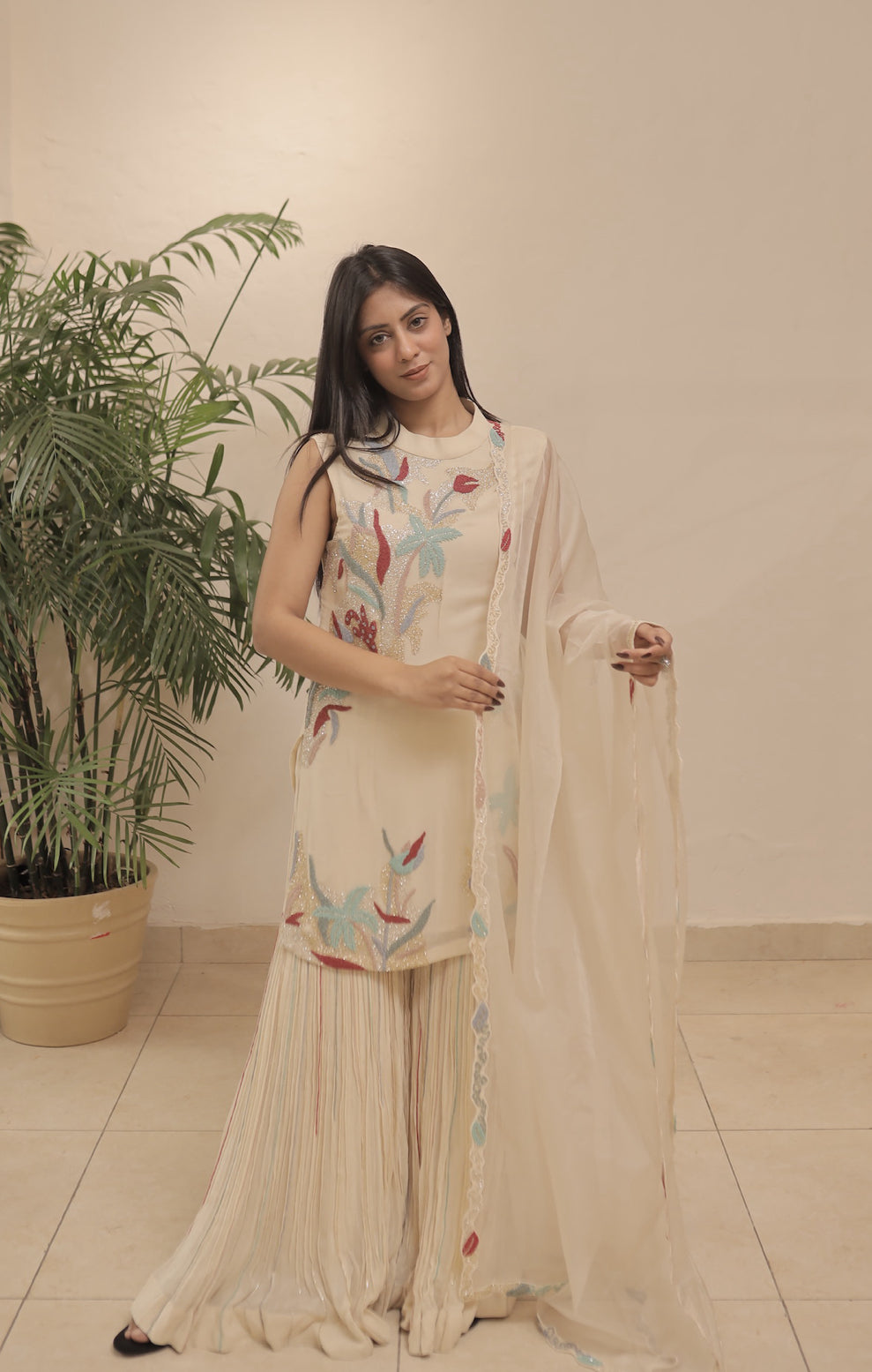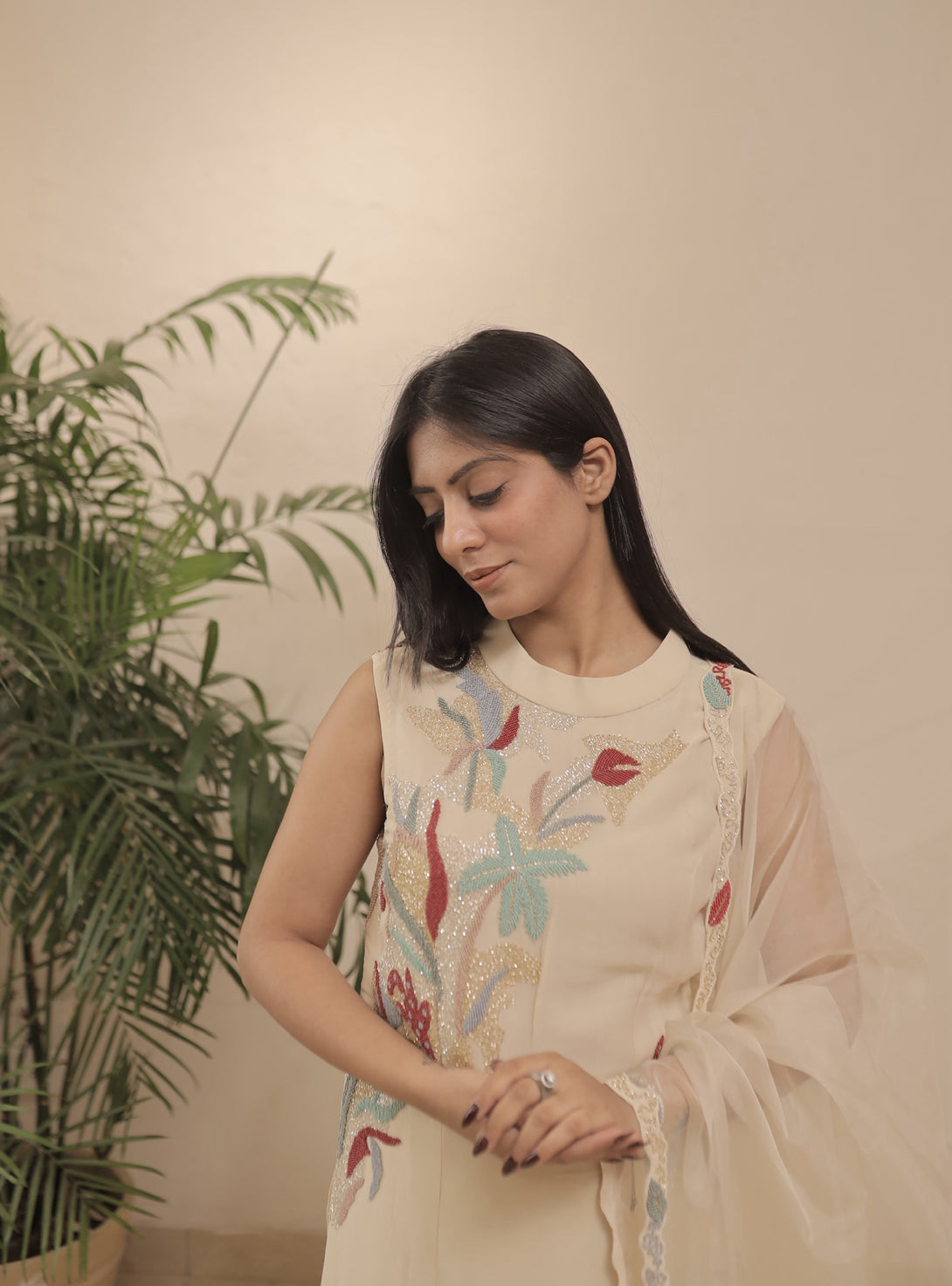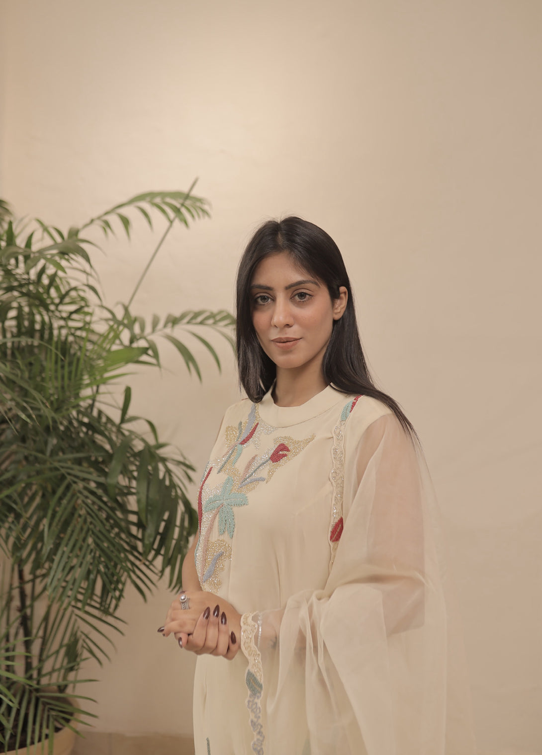 Fabric - Georgette Color: ivory Embroidery Details: Hand Embroidered Delivery Time: 10 days Wash Care: Dry Wash Only Availability: Made To Order Customization Available: no