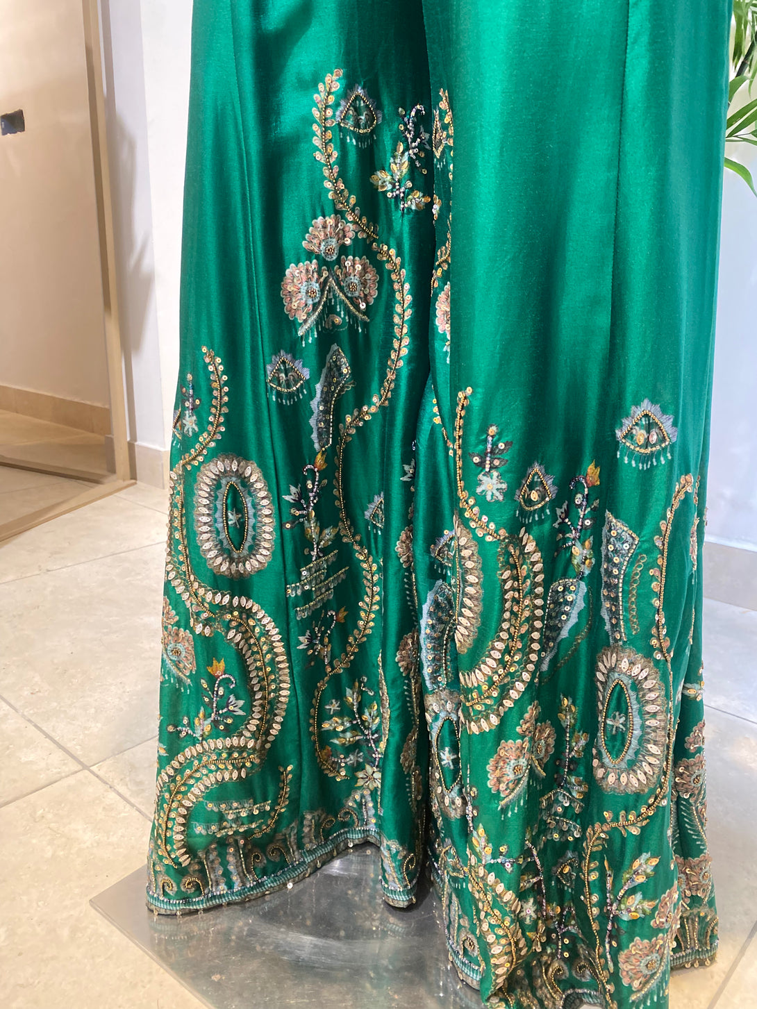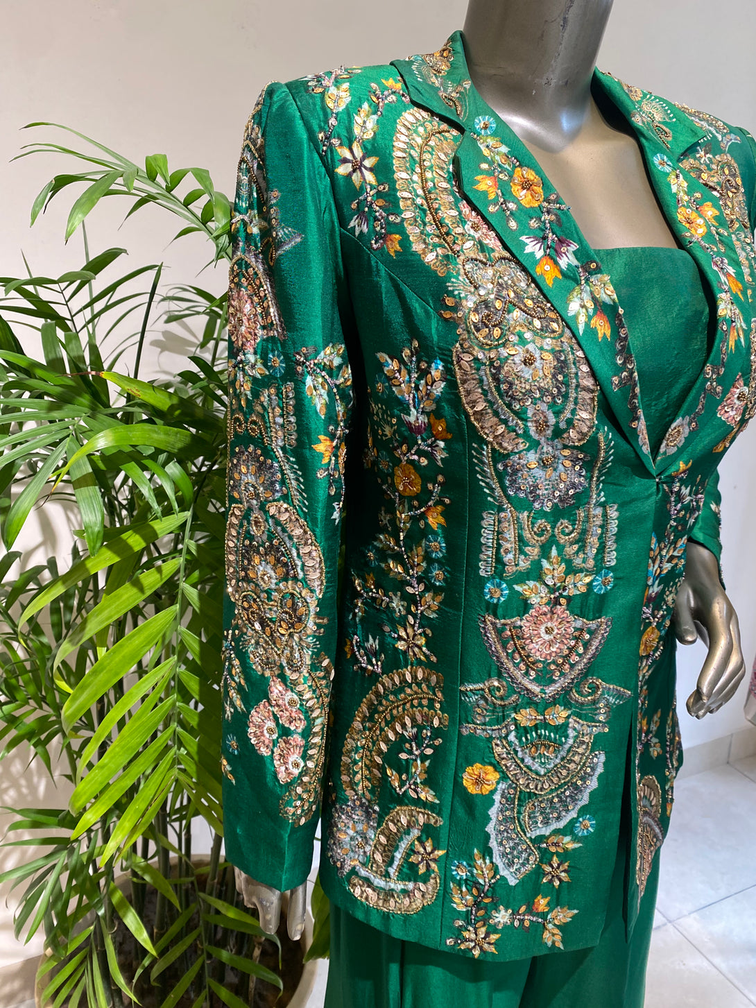 Fabric - SILK Colour: GREEN Embroidery Details: Print + Hand Embroidered Delivery Time: 35 days Wash Care: Dry Wash Only Availability: Made To Order Customization Available: YES