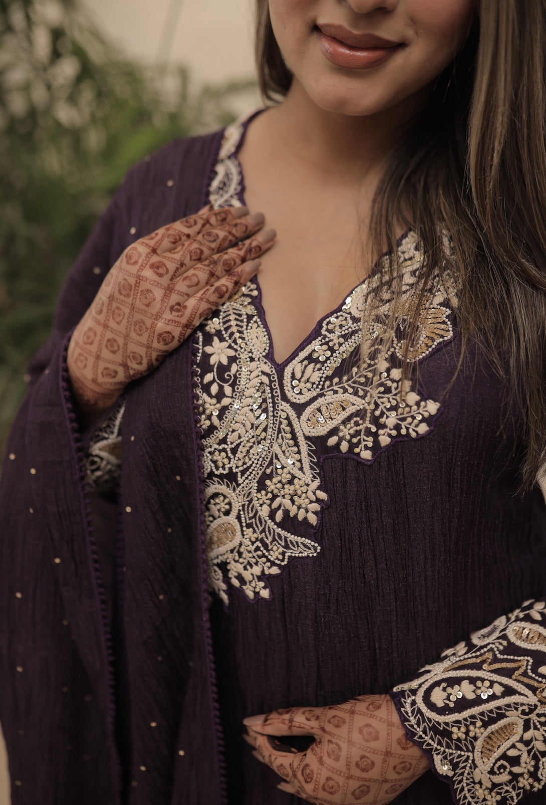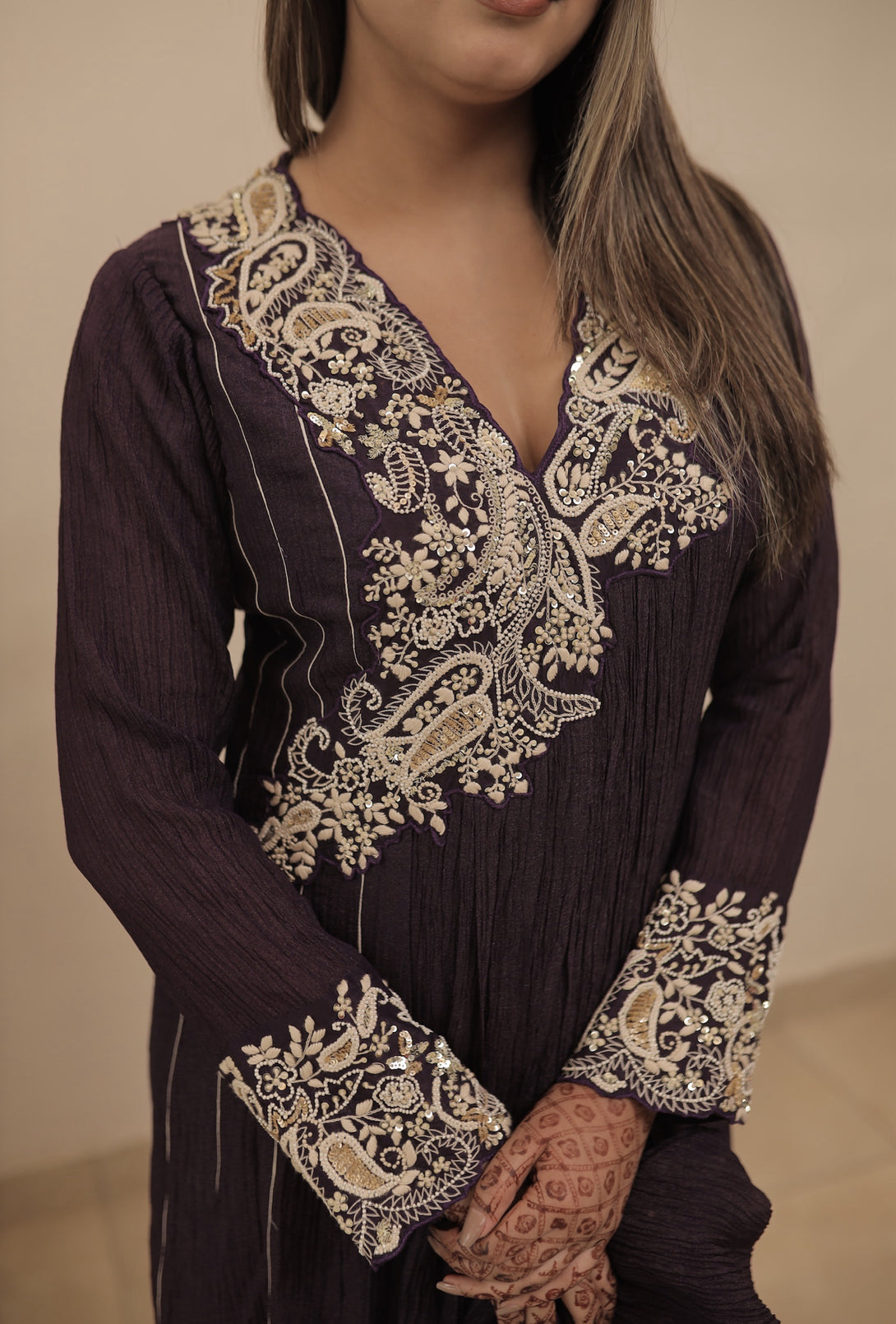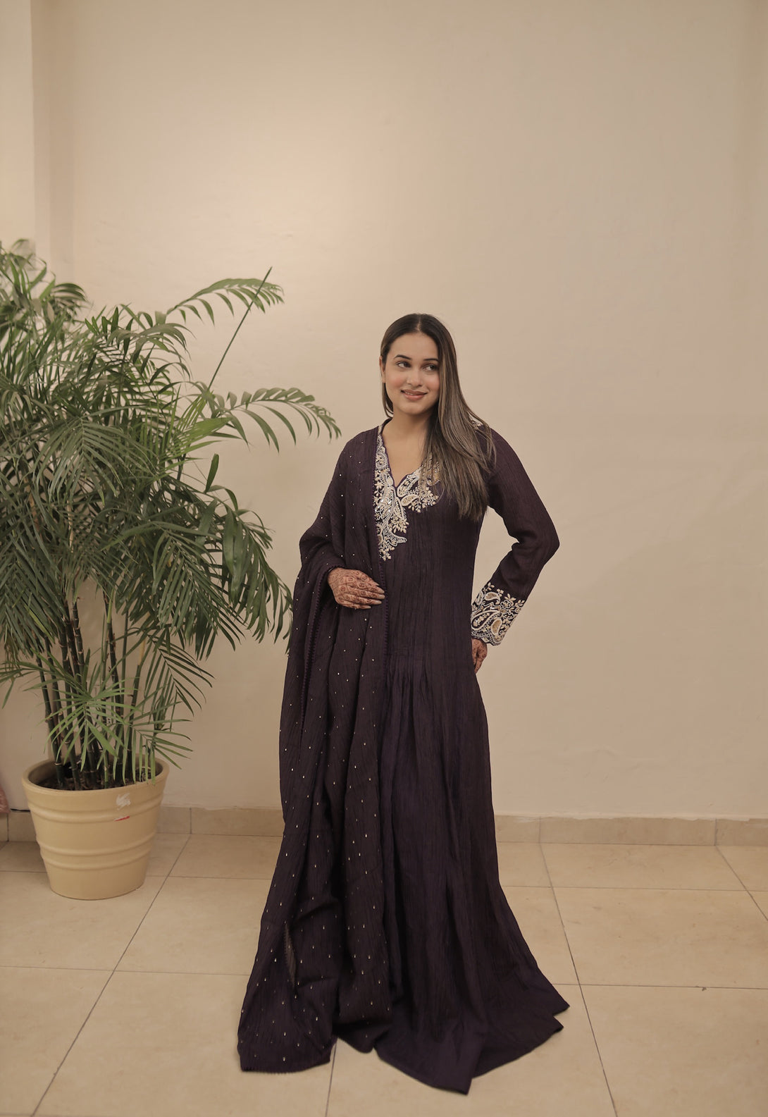 Color: Wine Embroidery Details: Hand Embroidered Delivery Time: 10 days Wash Care: Dry Wash Only Availability: Made To Order Customization Available: Yes